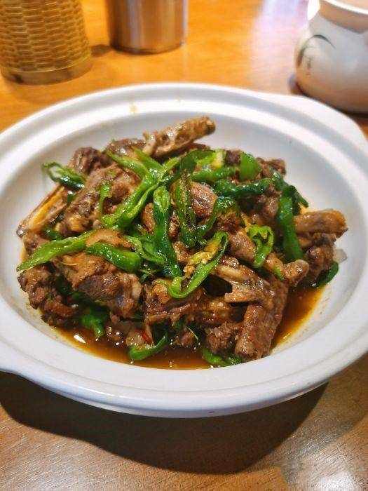 小炒黃牛肉,邵陽菜做牛肉是真的有一手,像大片牛肉、牙簽牛肉,小炒牛肉,精選香氣十足的黃牛肉,搭配尖椒、和邵陽米酒一起炒,酒香、牛肉香,口感鮮嫩。