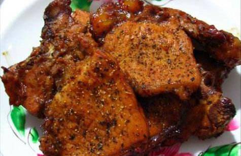 蜜汁豬排:1.裡脊肉排洗凈後擦幹水份,將裡脊排放入大碗中,同時將所有醃料倒入攪拌均勻,醃浸約15分鐘。2.起一熱鍋,放入3大匙的油,讓鍋燒熱,再將作法1的肉排放入煎至上色後,取出放入盤中。3.把蜜汁淋在作法2的裡脊肉上,再撒些芝;韭菜花放入沸水中氽燙一下後,即可裝盤擺飾。