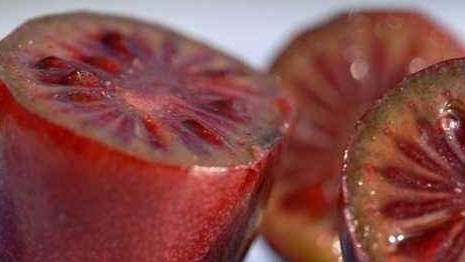這種軟棗獼猴桃外表長得非常像我們平常吃的一些大紅的,但是其實趙然棗獼猴桃和那種大棗,但這上沒有任何的聯系,尤其是這種軟棗獼猴桃,切開之後的果肉就像是菊花的花瓣一樣,非常的漂亮,但是這種軟棗獼猴桃不管是和大棗比,還是和獼猴桃的營養價值都非常的豐富,但是裡面的這些維生素就有將近20多種,特別是維生素c也是非常豐富的,所以其實在中國也是非常受大傢歡迎的,雖然現在它是一種非常小眾的果樹。