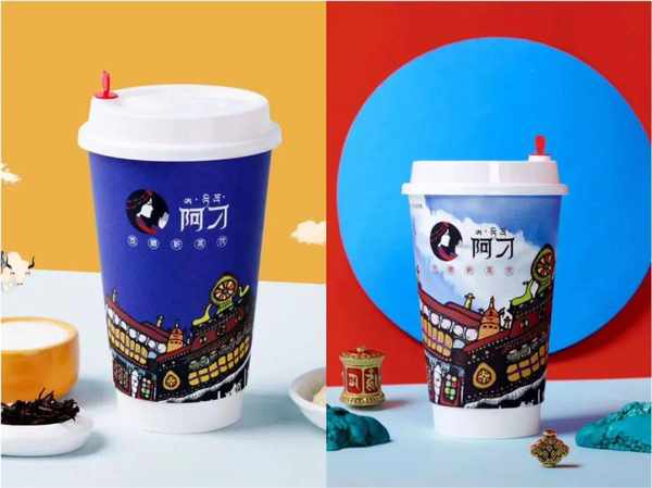第一次知道阿刁這個茶飲品牌,是在一個兩千萬級短視頻博主去西藏的視頻中,手拿兩杯很有藏族特色的奶茶,在阿刁的門店打卡拍照。