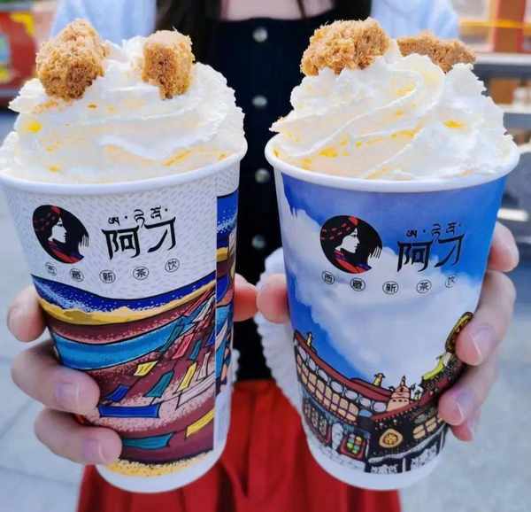 阿刁的做法,是在原有的基礎上,對酥油茶、甜茶做出改良,加入新茶飲元素,重新推出,“這樣做,外地人對西藏兩款傳統產品的接受度就更高瞭”。