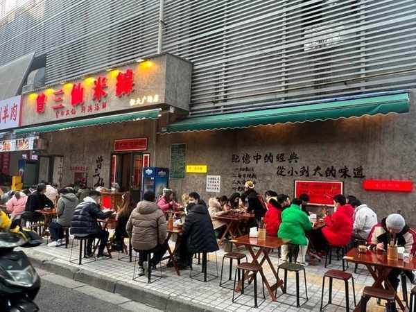 曾三仙的門頭設計頗具個性。紅字白底的招牌,寫著“曾三仙米線”幾個大字,簡單明瞭,再無多餘的元素。