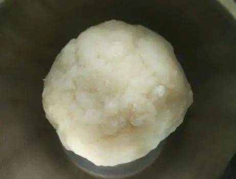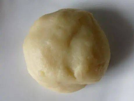 2、為瞭避免糖餡流出燙嘴,制作糖餡時需要將油炸糕包好,避免出現露餡的情況,因為燙過的面容易黏手,所以需要塗抹食用油揉面,這樣操作更加方便,晾涼後再揉面即可;