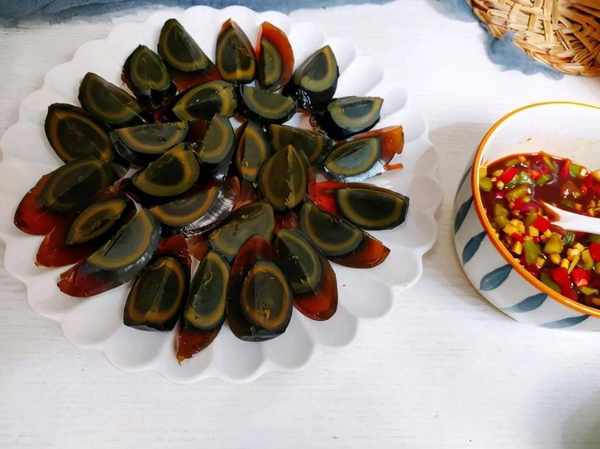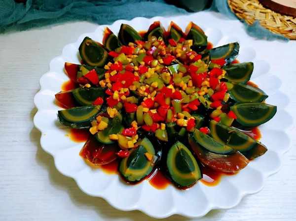 為瞭品嘗皮蛋的美味,我們需要將其切成瓣狀,並加入各種調味料進行混合,這樣可以有效去除其中的堿性成分,同時突出其獨特的鮮美香氣。如果用鹽醃制後再放入皮蛋醬或醋中浸泡,則會使皮蛋更鮮美可口。許多人所制作的冷拌皮蛋,其濃鬱的堿性和腥味讓人感到不適,而其中八成的原因則是由於調料的錯誤使用。