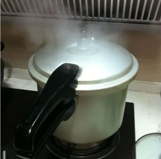 等高壓鍋噴汽後改中火壓5分鐘,再改小火壓10分鐘,關火等待高壓鍋氣壓降低。放汽打開鍋蓋後,撿出薑蔥,加入適量的鹽和雞精調味即可。