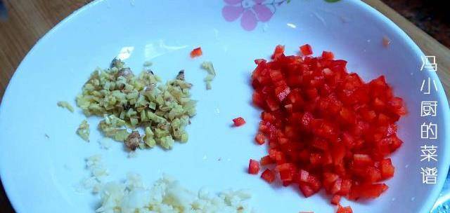 5.準備薑末,蒜末,紅椒丁。