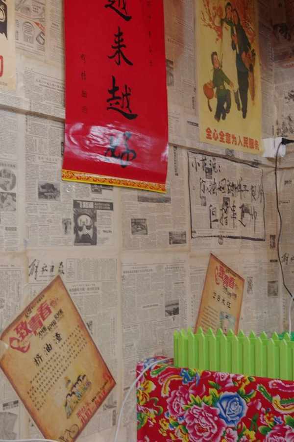 大量使用的的東北大花佈面非常醒目,用水泥磚頭砌成的火車卡座上鋪著軟墊,坐上去跟炕似的。墻上糊著上世紀八九十年代的舊報紙,等菜的時候無聊可以認真讀一讀,仿佛乘坐時光機。從環境到菜品感受到的東北風情濃鬱。