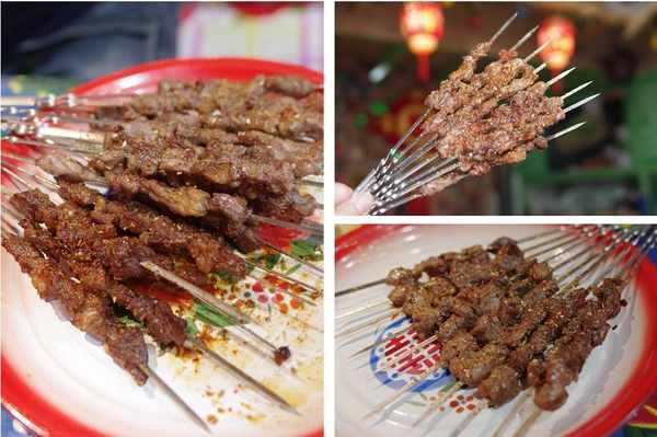 油邊,嫩牛肉,腰條等各種鐵簽串串分量可以,肉感實在,撒過孜然茴香後炭烤的效果簡單粗暴,反正吃起來揍是香!