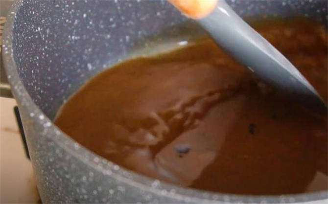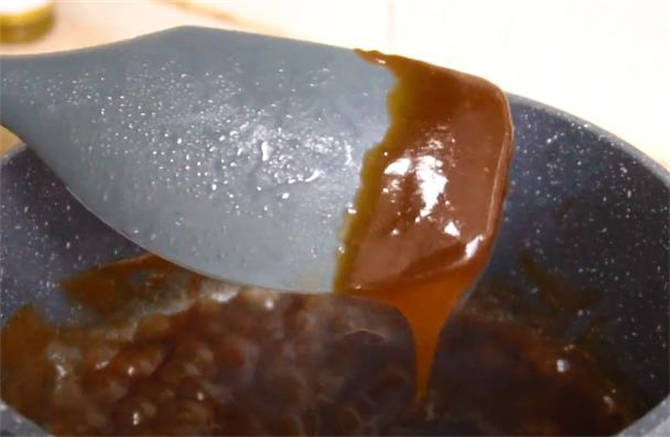 3.熬到粘稠冒泡的時候,這個醬就做好瞭,特別的簡單。