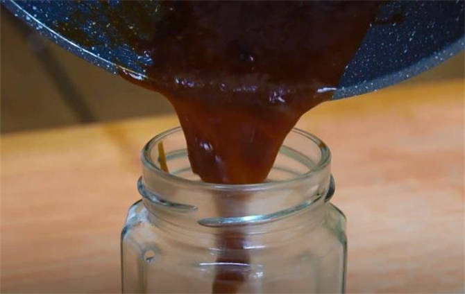 4.準備一個幹燥的瓶子,把熬好的醬倒進去。