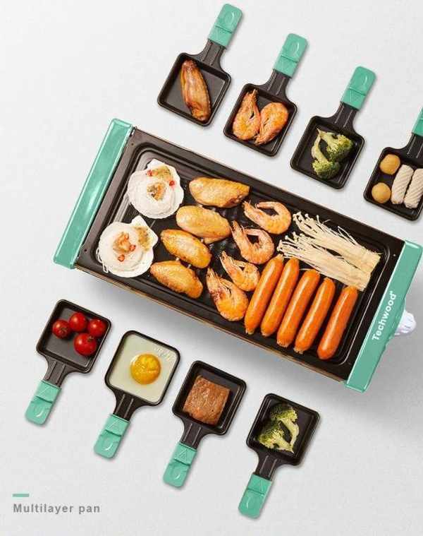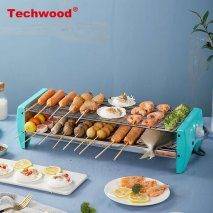 techwood 電燒烤爐 韓式傢用室內無煙不粘大號雙層燒烤架電烤盤烤肉機燒烤鍋電烤爐烤串羊肉鐵板燒