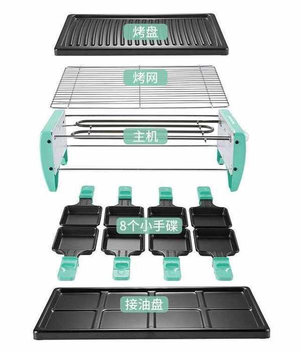這款電燒烤爐有著非常精美的外觀設計,采用金屬材料打造,很堅固,不需要擔心各種調料的腐蝕。購買時除瞭主機外還有附贈的烤盤、烤網、8個小手碟和接油盤等配件,讓我們可以烤出各種不同的美食。