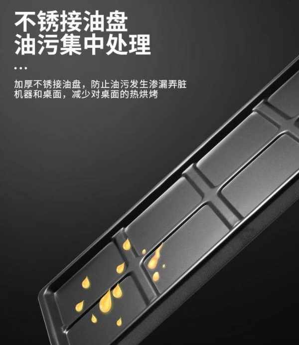 烤網和小手碟等配件都非常好用,而吸油盤可以避免油漬滴在其他地方,集中油漬更加方便清理,接油盤的加厚設計可以防止桌子受燙,不沾的表層也非常好清洗,一沖就很幹凈。