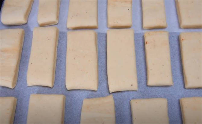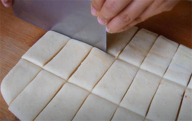 6.現在開始下面劑,先切長條,然後把這些長條分成三等份。
