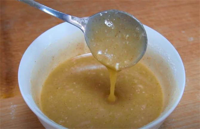8.發面的時間,給大傢介紹下油酥的制作方法,準備一些幹面粉,加鹽和十三香,倒入食用油攪勻,這樣油酥就做好瞭。