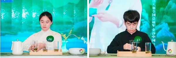初賽現場,茶藝師身著華服,端坐在茶席前,伴隨著輕柔的音樂,熟練地洗杯、溫壺、送茶、註水,舉手投足盡顯茶人風采,讓人如癡如醉。