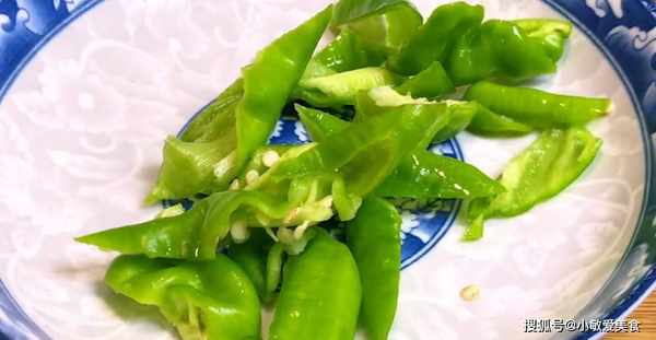 7、煮一分鐘之後,倒入適量的水淀粉,開大火收一下湯汁,煮至湯汁變濃稠的時候,再把尖椒倒進來,翻炒個至斷生。再把蒜末放進來翻炒均勻就可以出鍋啦,一道非常好吃的尖椒幹豆腐就做好瞭。