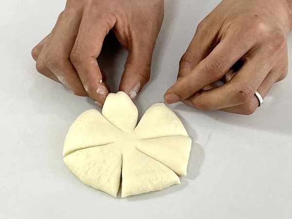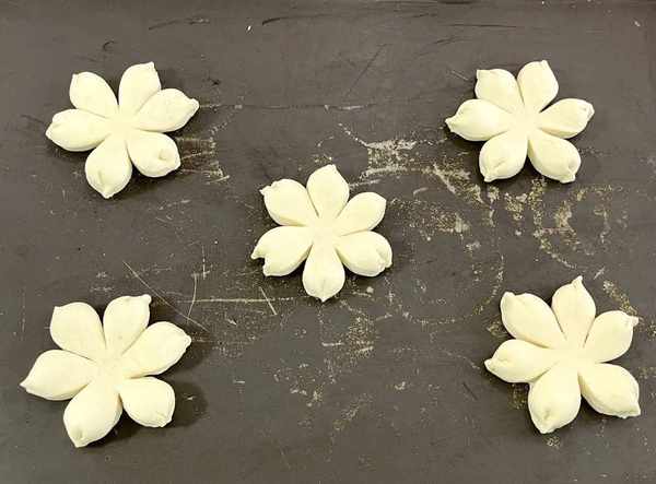 1.高筋面粉、白糖、食鹽、幹酵母、牛奶和水