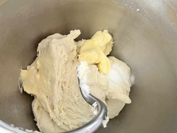 2.放入廚師機攪拌至出粗膜後加入黃油