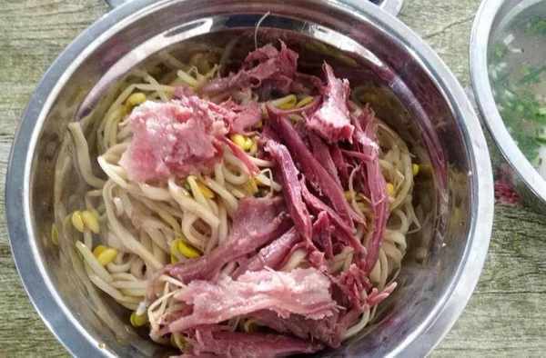 在煮面條的時候,可以煮半鍋豆芽,綠豆芽或者黃豆芽都可以,煮熟以後放在冷水中浸泡,瀝幹水分,後面直接用刀。豆芽一定要煮熟,煮不熟的話容易引起腸胃疾病。