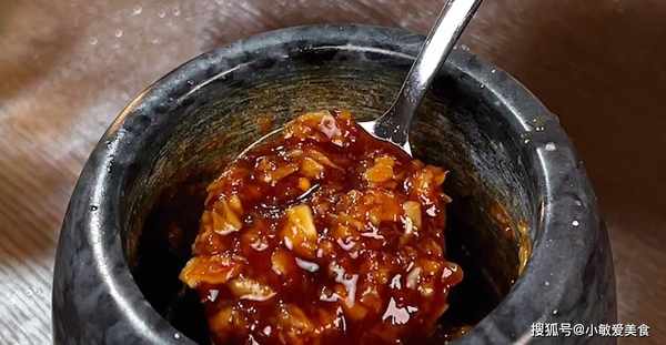 5、蒸茼蒿要配上蒜泥汁才好吃。蒜臼中加入蒜瓣,加入一些食鹽,搗成蒜泥,然後加入一勺的生抽,半勺的香醋,再加入一些香油,喜歡辣的來上一些辣椒油,攪拌均勻,蒜泥汁就做好瞭。