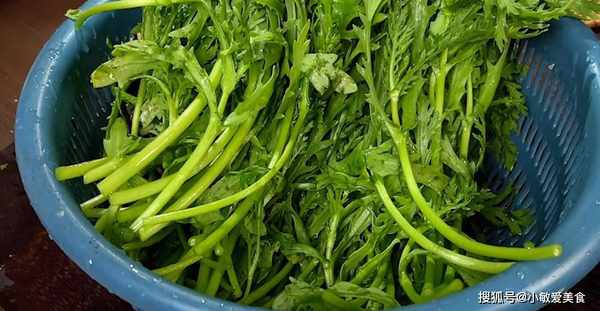 1、買來的茼蒿切去根部,放入水中清洗幹凈,撈出控幹水分備用。