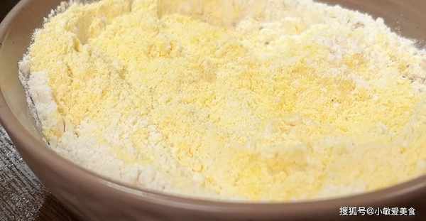 2、碗中放入兩勺的玉米粉,兩勺的面粉。加入適量的食鹽,再來一點五香粉,攪拌均勻。