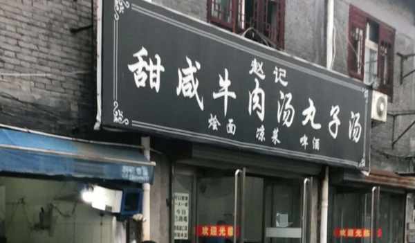 洛陽路邊這家小店,名叫甜鹹趙記牛肉湯丸子湯,早上賣牛肉湯,晚上則賣丸子湯,這家店一天到晚生意都很好,天天擠滿人。他家的牛肉湯味道濃郁,是用新鮮的牛肉和牛骨頭熬制三四個小時而成,牛肉特別的嫩,膻味不明顯,湯比較濃郁。
