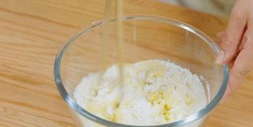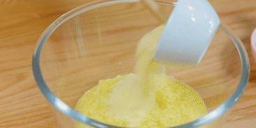 玉米漿當中加入玉米面、面粉、糖以及酵母,攪拌均勻。