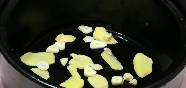 第三步:薑切薑片,蒜切蒜片,墊入砂鍋底部,目的為防止粘連