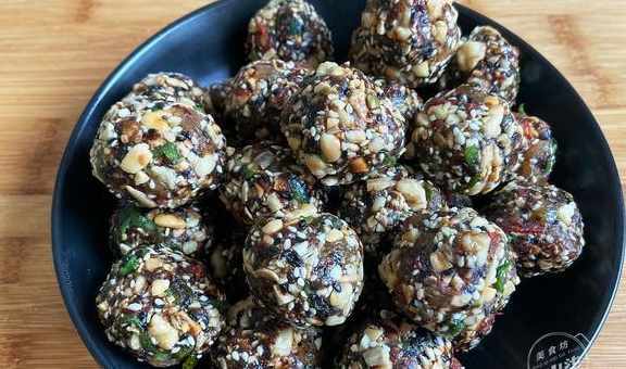 第七步:把拌好的果仁餡攥成大約30克左右的團,放一旁備用。