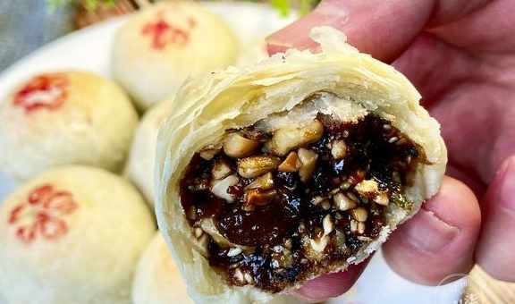 這樣我們的酥皮月餅就做好了,皮酥層多,裡面的果仁餡香而不膩,這樣做的老式酥皮月餅老人特別喜歡。