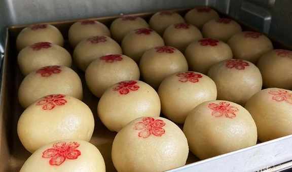 第十二步:取一個酥皮壓扁,中間放上果仁餡,用虎口收攏法封口團圓。