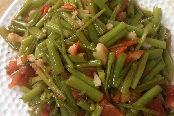 主料:ong菜梗一小把(把葉子摘掉哦),西紅柿一大個,小米椒四個,蒜頭一整個