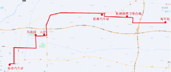 途經站點:臨清汽車站、火車站、站前路、銀河路、興臨路、東宛園、大唐熱電、松林汽車站、 松林燒烤節舉辦地(松林傢具產業工業園)、海軍張,站牌停靠。