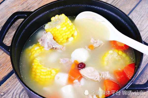 食材:排骨,玉米,山藥,胡蘿卜,薑片,蔥花。