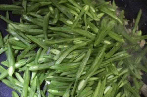 第4步:這樣,小扁豆受熱均勻,煮得更快。扁豆煮熟後,加鹽調味,更入味。最後倒入適量的水,稍微煮一下,這樣扁豆就容易熟瞭。扁豆煮熟後,翻炒片刻,然後從鍋中取出。