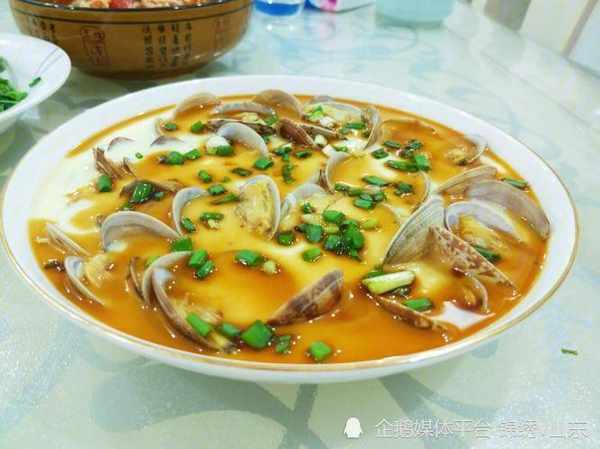 食材:花蛤、土雞蛋、蔥段、薑片、蔥花。