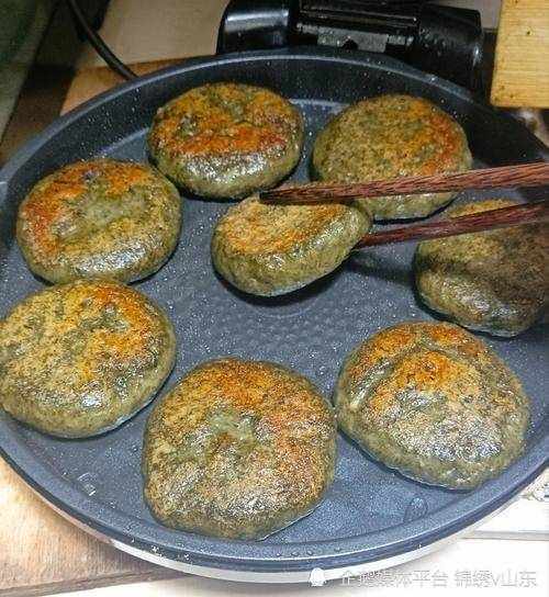 ③把面團分成大小相似的小劑子,再按壓成餅狀,放入鍋中煎。餅鼓起來,並且兩面都煎黃的時候就熟透瞭。裡面還可以加點紅豆沙、芝麻紅糖、香幹雪菜等。
