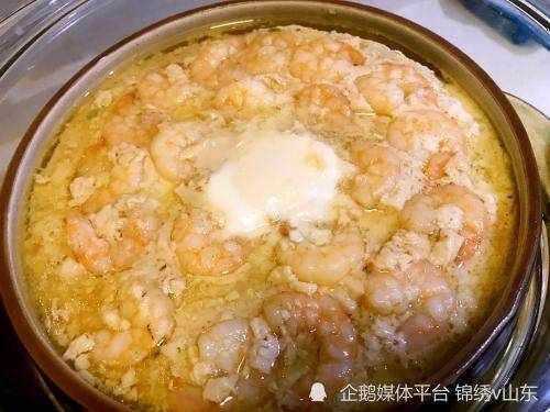 4.最後起鍋燒水,水燒開以後,鮮蝦肉餅蒸蛋上蒸鍋蒸煮30分鐘左右,再撒入一把白胡椒粉和蔥花點綴,即可出鍋開吃。