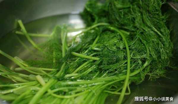 6、將焯過水的茴香撈出瀝幹水分,然後切成細絲。此時的茴香非常軟嫩,非常好切。