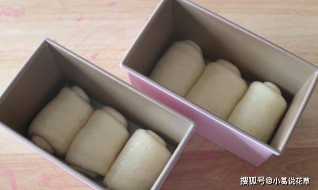 7、從上往下卷起來。6個卷筒同樣做完後,3個一組放入吐司盒中