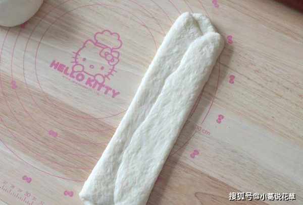 6.翻面後,將兩邊向中間對折,對折再搟長一點