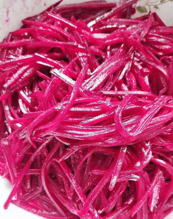 說起甜菜根,在菜市場上是很少見的。每次看到這道菜,我都想買更多。甜菜根看起來不太好,但是味道很好,顏值也比較高。它看起來更有吸引力。食欲,甜菜根又叫甜菜根,營養豐富、全面,吃法有很多種,清炒、涼拌或榨汁做各種面食,都有不同的味道。小饞貓最喜歡炒甜菜瞭。亂糟糟的,保留瞭大部分的營養,做法很簡單,跟著小饞貓一起學起來吧。