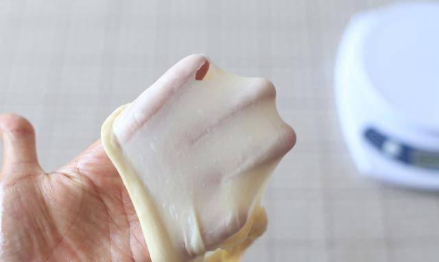 2.繼續揉至可以拉出透光膜,即展開階段