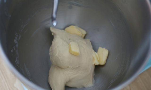 1.將除黃油以外的所有材料放入料理機的面桶中,揉成球狀,加入一些面筋,加入軟化的黃油