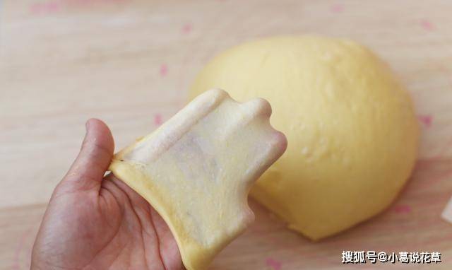 2.繼續揉面團。這一步面團一定要揉到圖中的薄膜可以拉出來為止。這樣做出來的面包變得更加松軟,口感特別好