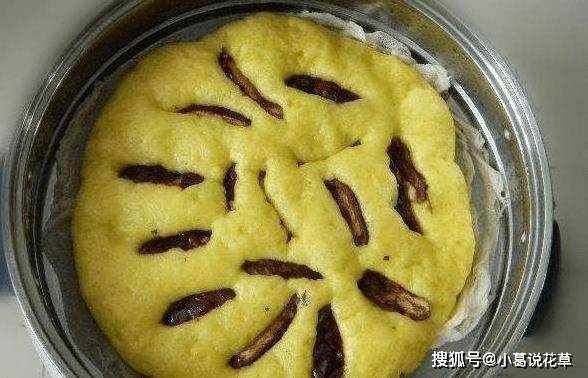 原料:玉米面適量,面粉適量,牛奶適量,紅棗適量,酵母適量。