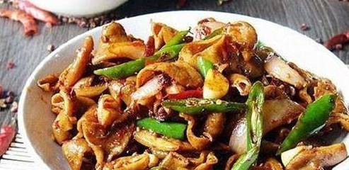 11炒至肥腸水份幹,加少許鹽,白糖,雞粉提味,起鍋裝盤