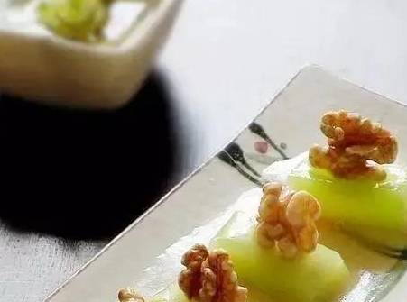 材料:核桃仁、萵筍、胡蘿卜、鹽、油、香油、水淀粉。